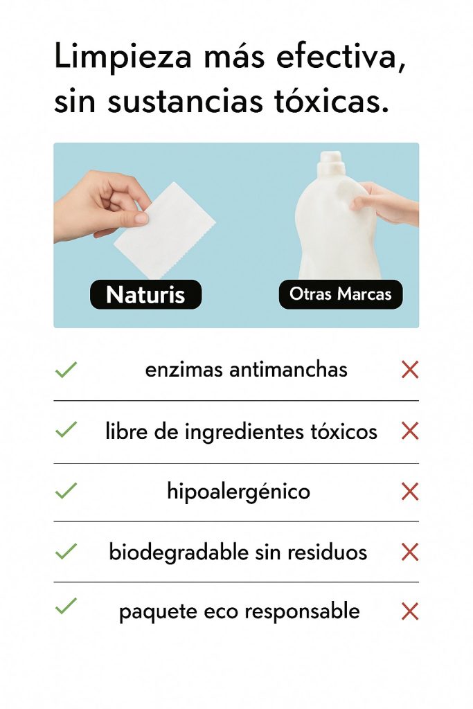 👉 Dale un respiro al planeta y disfruta de una limpieza eficaz con Naturis, la forma más simple y sostenible de lavar tu ropa.